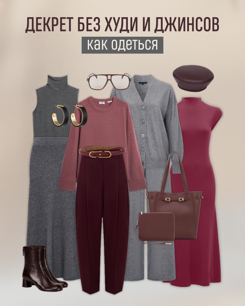 Не худи, не джинсы, не кроссы, а не мнется и не пачкается, для мамы в декрете, чтобы женственно и удобно – это что и как? ⠀ У мамы есть секрет🤫 ⠀ ❌Спортивки ⠀ ❌Короткие куртки ⠀ ❌Обтягивающие майки с принтами ⠀ ✅Свободный трикотаж ⠀ ✅Широкие струящиеся брюки и юбки до щиколоток ⠀ ✅Нейтральная цветовая гамма ⠀ ✅Акцентные аксессуары ⠀ Ничего не имеем против спортивной одежды, но если задача выглядеть женственно и стильно, то их надо уравновешивать. А чем? Пиджаком? Неудобно. ⠀ Поэтому явно спортивные вещи для этой задачи убираем. Сильных контрастов по стилю в таком гардеробе не будет. ⠀ Целостный, спокойный, casual гардероб: ⠀ 🧶максимально комфортный по тканям, ⠀ 🎨достаточно нейтральный по цветам (могут быть спокойные контрасты), ⠀ 💍с продуманными аксессуарами. ⠀ Еще момент с трикотажем: он тянется. В такую одежду удобно «перетечь» и после родов. ⠀ А что вы носили (бы) в декрете? ⠀ 👉🏻Комфортный 🍁осенний капсульный гардероб там же, где и всегда. ⠀ #марла_лайфхак