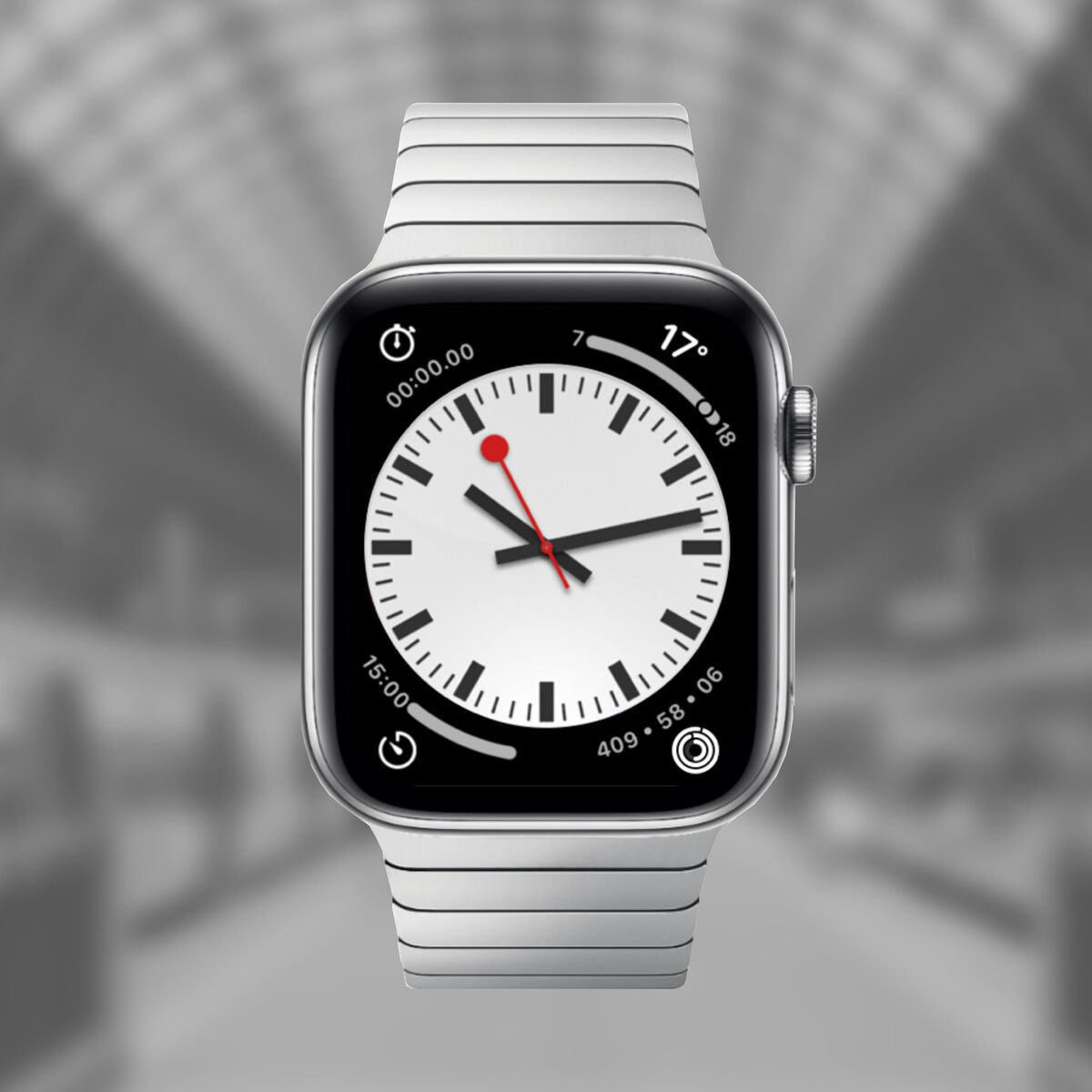 Циферблат, который мы вряд ли когда-то увидим в часах Apple Watch, а жаль. Для тех, кто не знает — это фирменный дизайн часов швейцарских железных дорог. Apple почти случайно добавила его в часы на планшет iPad в лохматых годах, получила судебный иск и быстро выпилила. Но смотрится дизайн хорошо всегда и везде. @fixed