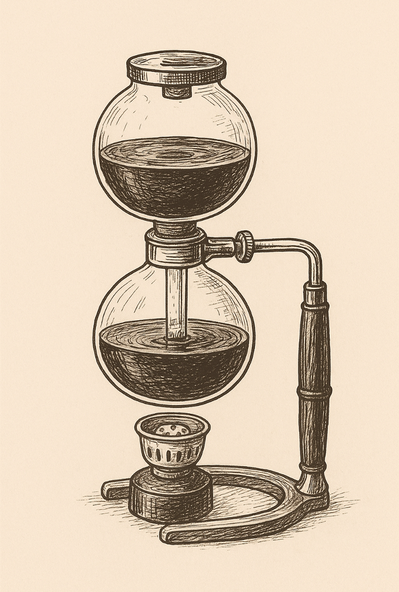 Сифон. В эпоху изобретений и еще отсутствующего электричества новые возможности открывали стекло, металл и газовые горелки, откуда в XIX веке и берет начало история Вакуумной Кофеварки, поставив приготовление кофе на стык науки, вкуса и эстетики. Первые запатентованные сифоны появляются в 1830-х годах на территории Франции и Германии. Ради того, чтобы увидеть подобный научный эксперимент, люди собирались в богатых домах Европы, называя это “кофейным театром”. Сам напиток получался очень чистым, ярким и прозрачным, с особой текстурой. При этом принцип работы данного устройства достаточно прост: нижняя колба нагревается, вода поднимается в верхнюю, смешиваясь с кофе, а после - остывает и возвращается обратно, оставив всю гущу в верхнем сегменте.