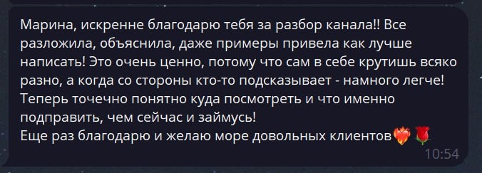 Человек, который не испугался и пришел.... ко мне на консультацию. Бывало у вас такое: думаешь "Да, не, ерунда какая-то" и не идешь на консультацию. А через месяц, когда понимаешь, что уже ОЧЕНЬ НУЖНО... вспоминаешь, что у Марины вот была возможность записаться. Но прошел месяц и теперь этой возможности. больше. нет. Грустная история, но правдивая. Сверху отзыв девушки, которая не побоялась прийти ко мне на разбор канала. И вас я очень жду, пока возможность есть. 🎁 Дарю разбор вашего канала в любой соцсети. Проведу в прямом эфире 🔥 Так же для участников вчерашнего нетворкинга в подарок стратегическая консультация по слову НЕТВОРКИНГ (в коменты или мне). 🌄🌄🌄🌄 💜 @MarySoshneva для стратегии твоего бренда и соцсетей.