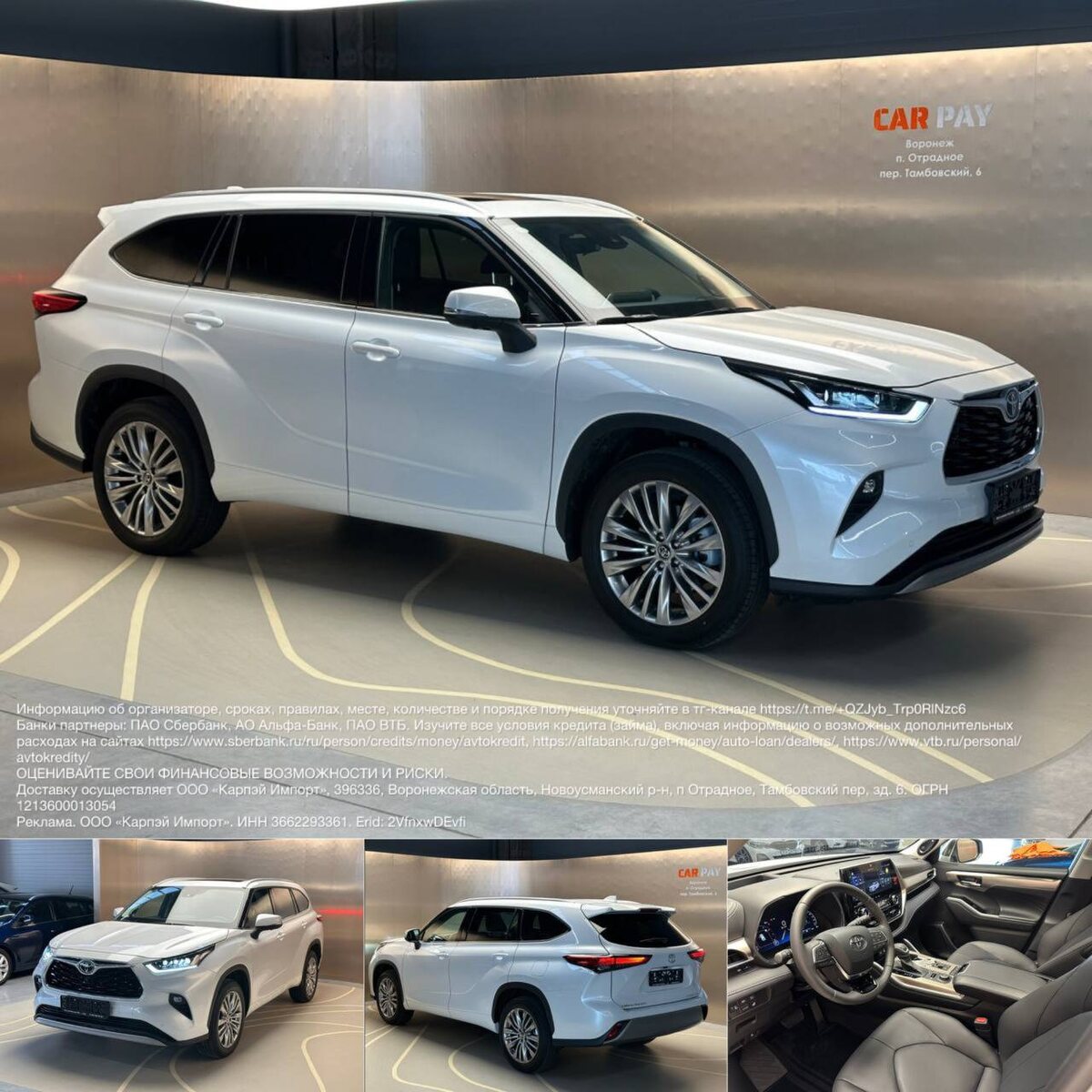 👉👉👉👉👉👉 Новый Toyota Highlander 2025 Стоимость: 5 800 000 руб. По промокоду «Блокнот»: 5 780 000 руб. 🟢Успей купить до подорожания 🤝 CarPay — один из крупнейших крытых автосалонов Черноземья. 🟢Более 50 авто в наличии 🟢Заказ авто из Китая, Кореи, Японии, ОАЭ, Европы 🟢Доставка по всей России 🟢Автокредит, лизинг, страховка, Trade-In(обмен) и выкуп авто все в одном месте 👉Консультация, расчет стоимости авто под заказ тут: https://t.me/+QZJyb_Trp0RlNzc6