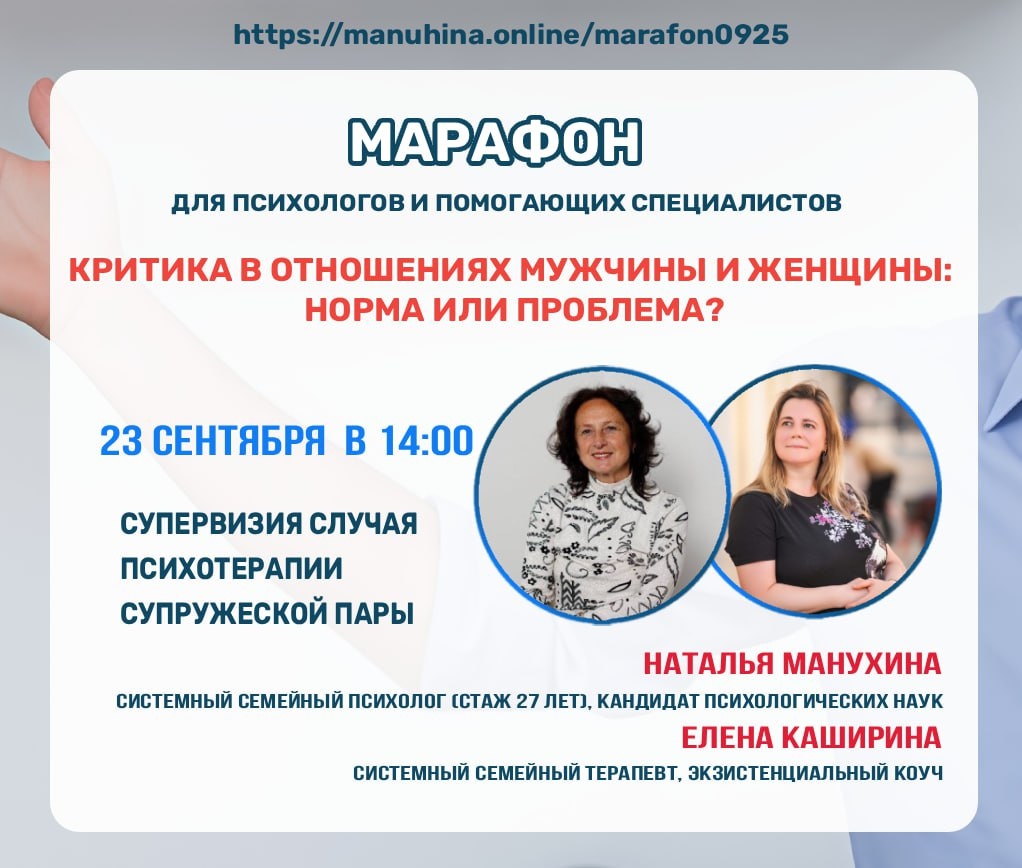 Приветствую, коллеги! 🚀 Вчера первый день марафона КЭф "Критика в отношениях мужчины и женщины: норма или проблема?" открыли Наталья Манухина и Елена Каширина, проведя эфир в новом для марафона формате - в формате супервизии. ⏺️ Вот небольшой фрагмент эфира, в котором участники делятся своими впечатлениями о прошедшем эфире и немного рассказывают о Клубе Эффективного Консультанта ⏩ Смотреть фрагмент эфира ▶️ Вступить в Клуб Эффективного Консультанта (КЭф)