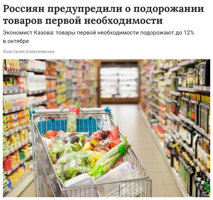 🔺🇷🇺 В России товары первой необходимости могут подорожать до 12% в октябре, предупреждают экономисты