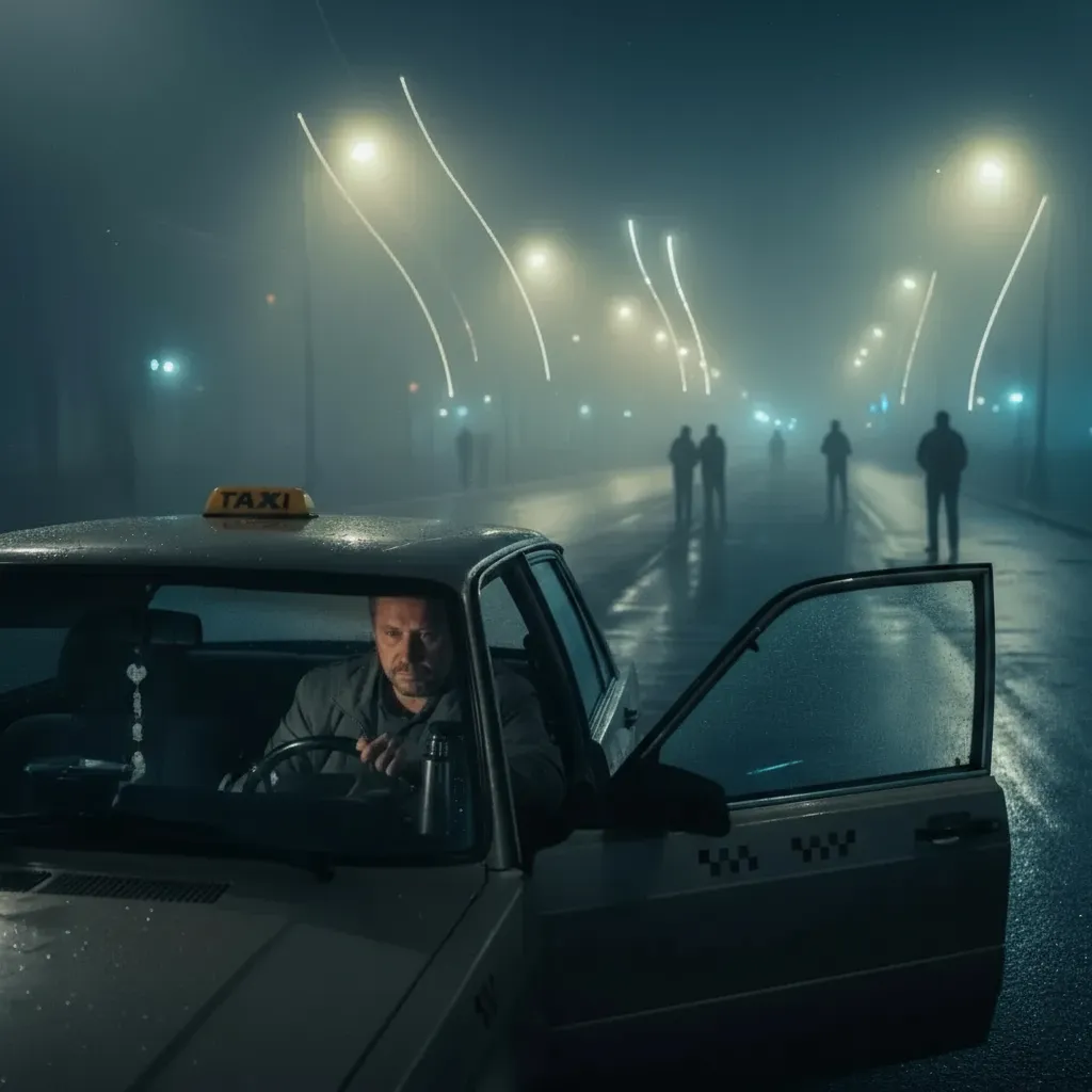 Ночной город дышал туманом, как зверь — тихо, протяжно, с шорохом мокрых улиц. Фонари расплавляли темноту узкими лезвиями света, и редкие прохожие тянули за собой длинные тени, словно чужие жизни. Артём — таксист со стажем и привычкой не задавать лишних вопросов — уже собирался завершать смену. На дисплее моргала вялая реклама, радио шептало забытый шансон, в термосе остыл чай с мятой. И именно тогда задняя дверь его машины открылась без звука.