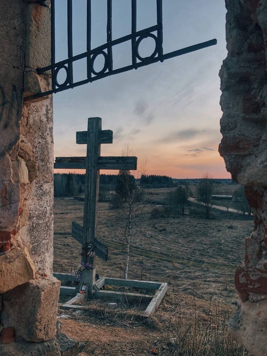 И если вначале жизнеутверждающие лозунги в СМИ верещали , мол "возродим!", то очень быстро полемика сменилась в сторону - давайте сохраним хотя бы то, что осталось. В итоге принято решение все, что рухнуло - красиво сложить кучами рядом, а то, что еще стоит вертикально - зафиксировать и укрепить. Типа - реставрации не подлежит. Памятник же ж ! В итоге -получили склеп с трупом внутри - вроде того, что на Красной площади, только отделка победнее. Несчастливое место. Зато - очень показательное. Мне повезло увидеть останки Троицкой церкви в "естественной" среде. На закате. А еще - в компании талантливого фотографа ( https://vk.com/ann_summers13 ) . Поэтому мне на память остались такие эпичные и красивые фото. Именно таким и останется в моей памяти храм деревеньки Пятая гора - величественным, рассыпающимся в прах, но по-прежнему - колоссальным и фактурным.