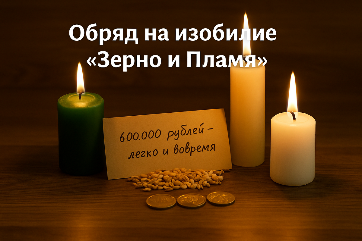 Многие ищут быстрые практики для привлечения денег. Но самое сильное — это древние символы: зерно (урожай, рост) и пламя (сила, энергия). Вместе они создают поток изобилия. 📌 Смысл: Вы закладываете в поле образ — ваш дом становится полем урожая, а деньги текут к вам как река. 🔮 КАК ПРОВЕСТИ ОБРЯД: 1️⃣ Подготовка. Вам понадобятся: - Свечи: зелёная (рост), золотая/жёлтая (деньги), белая (очищение). - Зёрна (пшеница, рис, овёс). - Монеты (3 блестящие). - Бумага с суммой/ресурсом, который хочешь привлечь. 2️⃣ Создайте круг: Зажгите белую свечу и скажи: «Очищаю пространство. Пусть всё ненужное уйдёт, а дорога для изобилия откроется». Поставьте зелёную и золотую свечи рядом, положите перед ними бумагу, сверху — монеты и горсть зёрен. 3️⃣ Активация: Проводите зажжённой зелёной свечой над зерном и монетами, скажите трижды: «Как зерно в земле множится, так и достаток в доме моём рождается. Как пламя свечи разгорается, так и деньги ко мне собираются. Пусть будет много, пусть будет ладно, пу
