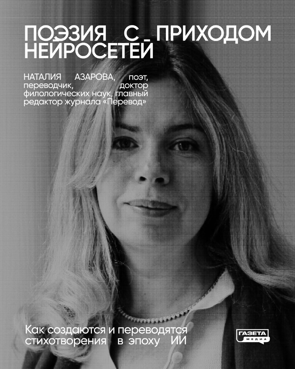 «Поэзия открывает в мире то, что еще не описано, говорит о неизвестном, а у ИИ пока такой возможности нет» За строками переводов с китайского, испанского или английского скрывается не только виртуозное владение словом, но и титаническая работа по сохранению ритма, интонации и духа оригинала. Но могут ли новые технологии заменить специалистов этой индустрии? Новая героиня «Газеты» Наталия Азарова видит в нейросетях не замену поэту-переводчику, а новый инструмент, который способен избавить от рутины, но не от творчества. Она убеждена: главное преимущество человека перед машиной — в его жизненном опыте, субъективности и смертности, которые и придают стихам подлинность. В целом я положительно отношусь к любым техническим новациям и ритму времени и считаю, что мы можем их использовать, не впадая в крайности эйфории или отрицания, а расценивать их как удобный инструмент. Узнайте больше о том, как искусственный интеллект влияет на мир поэтического перевода, почему ритм важнее смысла и в ч