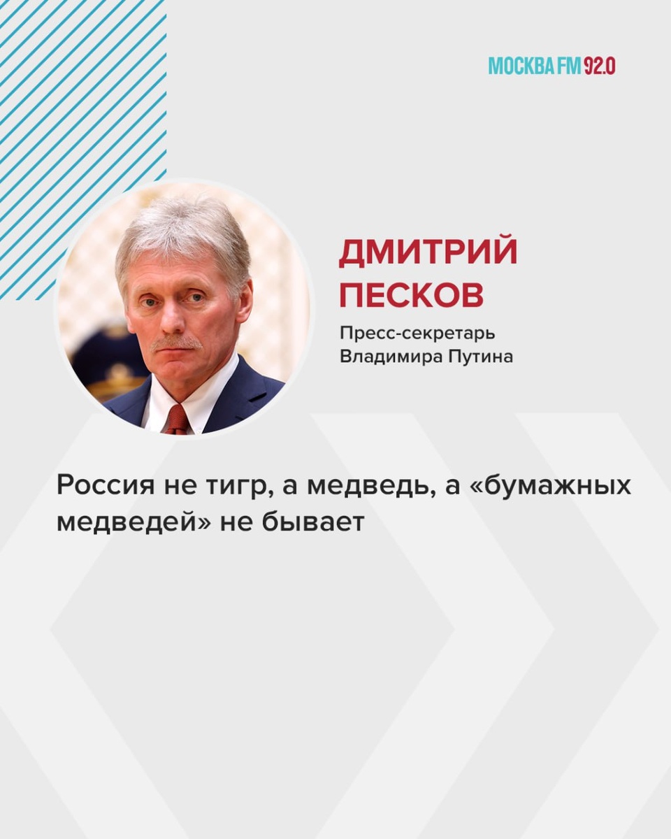π―π» Β«Π ΠΎΡΡΠΈΡ Π½Π΅ ΡΠΈΠ³Ρ, Π° ΠΌΠ΅Π΄Π²Π΅Π΄ΡΒ» ΠΠΌΠΈΡΡΠΈΠΉ ΠΠ΅ΡΠΊΠΎΠ² ΠΏΠΎΡΠΏΠΎΡΠΈΠ» Ρ Π’ΡΠ°ΠΌΠΏΠΎΠΌ, ΠΊΠΎΡΠΎΡΡΠΉ Π²ΡΠ΅ΡΠ° Π½Π°Π·Π²Π°Π» Π ΠΎΡΡΠΈΡ Β«Π±ΡΠΌΠ°ΠΆΠ½ΡΠΌ ΡΠΈΠ³ΡΠΎΠΌΒ». ΠΡΠ΅ΡΡ-ΡΠ΅ΠΊΡΠ΅ΡΠ°ΡΡ ΡΠ΄Π΅Π»Π°Π» ΠΈ Π΄ΡΡΠ³ΠΈΠ΅ ΠΈΠ½ΡΠ΅ΡΠ΅ΡΠ½ΡΠ΅ Π·Π°ΡΠ²Π»Π΅Π½ΠΈΡ: πΌ Π’Π΅Π»Π΅ΡΠΎΠ½Π½ΡΠΉ ΡΠ°Π·Π³ΠΎΠ²ΠΎΡ ΠΡΡΠΈΠ½Π° ΠΈ Π’ΡΠ°ΠΌΠΏΠ° ΠΏΠΎΠΊΠ° Π½Π΅ Π·Π°ΠΏΠ»Π°Π½ΠΈΡΠΎΠ²Π°Π½, Π½ΠΎ ΡΠΊΠΎΡΠΎ ΠΌΠΎΠΆΠ΅Ρ Π±ΡΡΡ ΠΎΡΠ³Π°Π½ΠΈΠ·ΠΎΠ²Π°Π½. πΌ ΠΡΡΠΈΠ½ ΡΠΎΡ