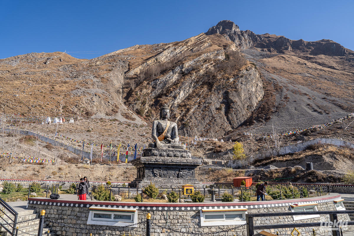 Кульминацией ноябрьского трекинга вокруг Аннапурны будет перевал Торонг-Ла 5416 м, после которого нас ждёт спуск в легендарный Муктинатх. Он является священным местом для индуистов и буддистов. 📿 Это уникальное место, где соединяются воедино 5 священных стихий: огонь, вода, небо, земля и воздух. Небо, земля и воздух в этих краях везде священны, священная вода в храме Вишну, а здесь находится пятый элемент — священный огонь. Это Дхола Мебар Гомпа, или «Храм священного огня», в котором горит пламя, выходящее из недр земли. Небольшой, едва заметный огонь, вокруг которого построен буддийский храм. Здесь в начале XIX века индуисты освятили храм Вишну и назвали его Муктинатх — Господь Освобождения. Стиль пагода, в котором выполнен храм, является символом религиозного симбиоза индуизма и буддизма. Напротив храма Муктинатх располагаются 2 кунды. Считается, что паломник, принимающий омовение в этом пруду, смывает с себя негативную карму. Рядом находится ещё один храм. С трёх сторон он окружен