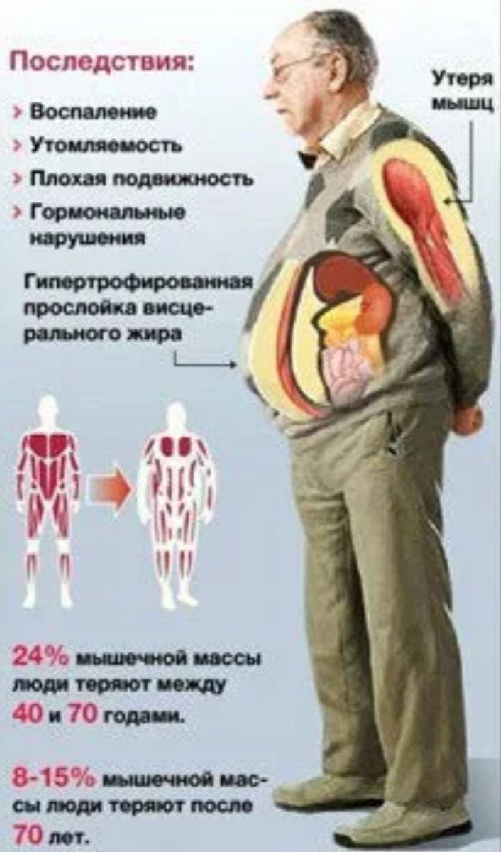 «Три вора молодости» Саркопения, остеопороз и ожирение: три спутника старения, о которых важно знать! Старение — это не только морщины и седина. Это глубокие изменения внутри нашего тела, которые напрямую влияют на качество жизни. Современная наука объединяет три ключевых возрастных изменения в понятие «остеосаркопеническое ожирение». Что же это такое и почему это опасно? Вор №1: Слабость- Саркопения — потеря мышечной массы и силы. Это не просто дряблые мышцы. С возрастом мышечная ткань уменьшается, а то, что остается, часто замещается жиром (миостеатоз). Это приводит к слабости, риску падений и потере независимости. ➡️ Важный факт: Сила мышц — даже более важный показатель, чем их объем! Вор №2: Хрупкость- Остеопороз — снижение плотности костей. Кости становятся хрупкими. Риск переломов (особенно шейки бедра и позвонков) резко возрастает после 70-80 лет. У женщин это часто связано с менопаузой, у мужчин — с возрастным снижением гормонов и дефицитом витамина D. Вор №3: Тяжесть-