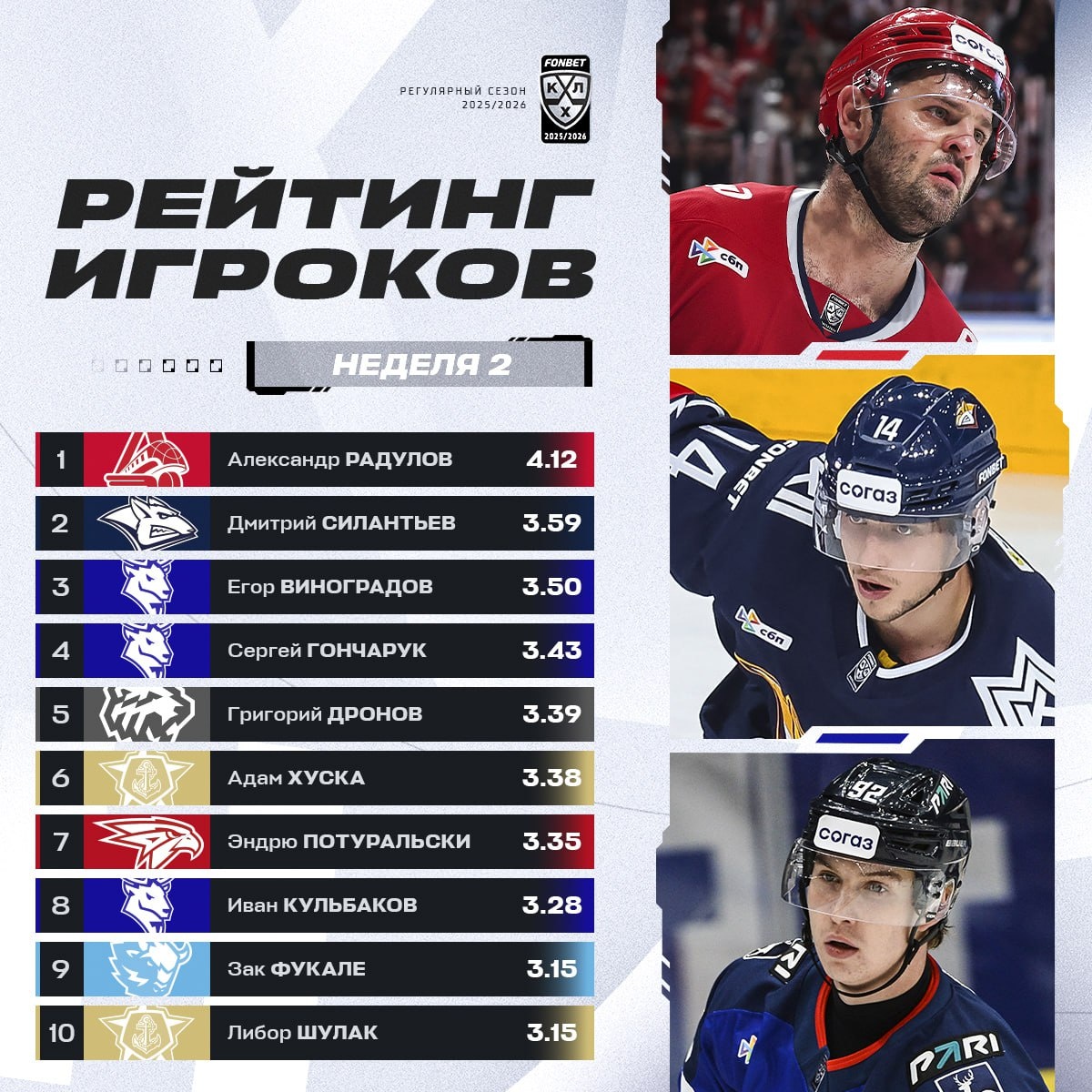 Радулов, Силантьев и Виноградов в тройке лидеров нового Рейтинга игроков.