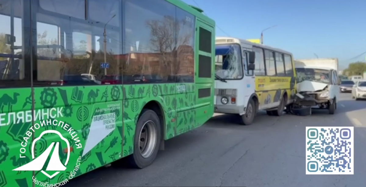 Авария произошла в 07.15 около остановки общественного транспорта «Огородная». Водитель грузовой «ГАЗели» врезался в попутную большую маршрутку, которая как раз остановилась, чтобы выпустить и забрать пассажиров. От удара ПАЗик пролетел вперед и протаранил автобус VolgaBus, отходивший от остановки. «В результате ДТП травмы получил пассажир автобуса ПАЗ. На месте происшествия работают сотрудники Госавтоинспекции, которые проводят проверку и устанавливают все обстоятельства случившегося», – сообщили в пресс-службе ГАИ по Челябинской области. Как сообщал «ЧелябинскСегодня» ранее, накануне массовая авария произошла в Ленинском районе областного центра. На перекрестке улиц Новороссийская и Барбюса столкнулись четыре автомобиля – Mazda Familia, Mercedes-Benz, ГАЗ и Nissan Almera. Пострадал водитель автомобиля Mazda Familia.