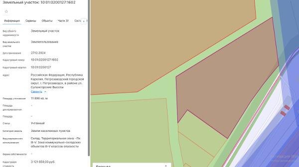Название: площадь 11896 кв.м, местоположение: Российская Федерация, Республика Карелия, Петрозаводский городской округ, г