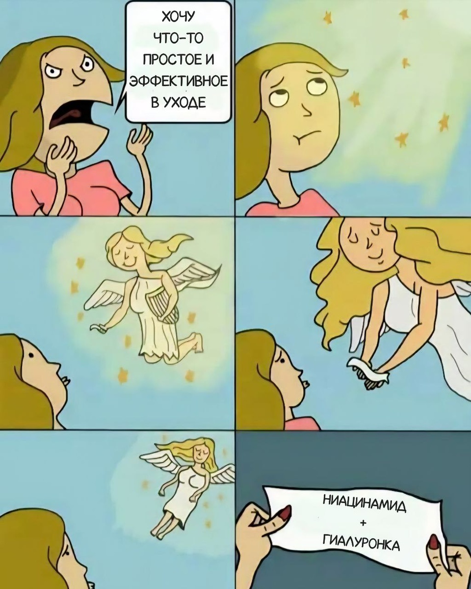 Заходишь в магазин, а там десятки сывороток и кремов, глаза разбегаются, и непонятно, с чего начать? Хочется и увлажнить, и поры сузить, и блеск убрать, и тон выровнять. Так вот, есть комбо, которое реально закрывает почти все эти запросы разом. Встречайте: ниацинамид и гиалуроновая кислота У каждого из них своя «суперсила»: Ниацинамид (витамин B3) • регулирует салоотделение → меньше блеска и забитых пор • укрепляет барьер кожи → защита от обезвоживания и раздражения • выравнивает тон и борется с постакне • работает как антиоксидант защищает от стресса и УФ-повреждений Гиалуроновая кислота • притягивает и удерживает влагу → кожа становится наполненной и упругой • разглаживает рельеф и мелкие морщинки за счёт «водного наполнения» • возвращает коже сияние, убирает тусклость • усиливает действие других компонентов, так как кожа становится более увлажнённой и восприимчивой А вместе они дают синергию: ниацинамид «запирает» влагу внутри, укрепляя барьер, а гиалуронка эту влагу «доставляе