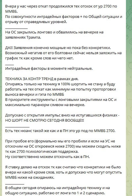 🆘В рамках обучения смотрим обзор. Это ежедневный обзор который выходит в закрытом ТГ канале ДО начала сессии. ❗️Объясню свое видение ситуации, сегодня ТОЛЬКО ЛОНГ опираясь НА ТЕХНИКУ и оценку общей ситуации ❗️План на день, ЛОНГ опираясь на технику и общую ситуацию. + скрин с планом на день. ПОЧИТАЙТЕ!!! ____________ ❗️Итог, все отработанно четко, сделки закрыты на пике АТР по ММВБ _________ ЮТУБ👉https://youtu.be/xETwRTpK6dE ВК👉https://vk.com/wall-210912207_5110 ____ 🆘СМОТРИ ОБЗОРЫ!!! Хочешь ежедневно получать такую информацию до начала ОС?? Присоединяйся!!! ТГ канал @LaktionovPrivat_bot - Подписка отбивается за одну сделку!