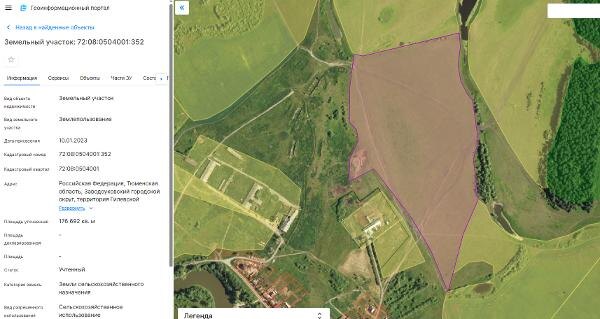 Название: ЛОТ № 1: Российская Федерация, Тюменская область, Заводоуковский городской округ, территория Гилевской сельской администрации, площадью 176692 кв.м, кадастровый номер 72:08:0504001:352. Вид разрешенного использования — Сельскохозяйственное использование. Категория земель — земли сельскохозяйственного назначения. Канал: Госземля Тюменская область Область: - Район: - Населенный пункт: - Локация: Смотреть на карте ВРИ: Сельскохозяйственное использование Кадастровый номер: 72:08:0504001:352 Кадастровая стоимость: 330414.04 Вид сделки: Аренда Площадь: 176692 м² Начальная цена: 33041.00 руб. Дата завершения: 09.10.2025 Подробнее: ГИС ТОРГИ #госземля #земляотгосударства #земля #земельныйучасток #земельныеторги #торги #аукцион #арендаземли #аренда #тюменскаяобласть