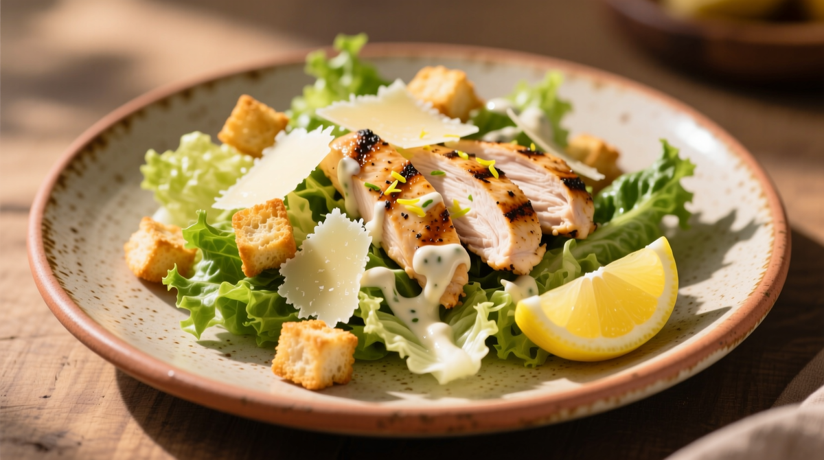 Салат «Цезарь» - это настоящая кулинарная легенда. Несмотря на простоту ингредиентов, он обладает насыщенным вкусом, хрустящей текстурой и безупречным балансом - от свежести листьев салата до пикантности заправки.
