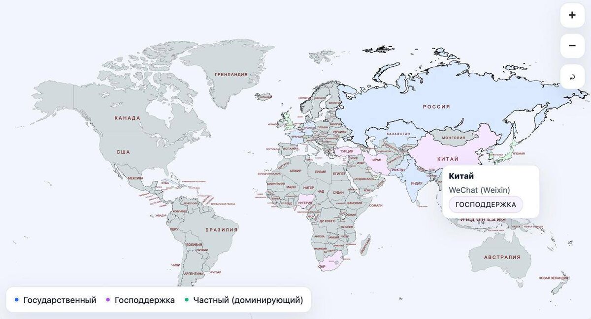 Нашел в сети проект, отслеживающий, как страны по всему миру отказываются от глобальных мессенджеров (вроде WhatsApp и Telegram) в пользу собственных, «суверенных» аналогов. Карта наглядно показывает растущий тренд на цифровой суверенитет. Например, пока в России госслужащих переводят на MAX, в Индии продвигают Sandes, а в Китае тотальный контроль обеспечивает WeChat. Оказывается проблема цифрового суверенитета волнует не только Россию и Китай. Западные страны, такие как Франция и Германия, тоже переводят своих чиновников на защищенные национальные платформы на базе протокола Matrix. @lobushkin