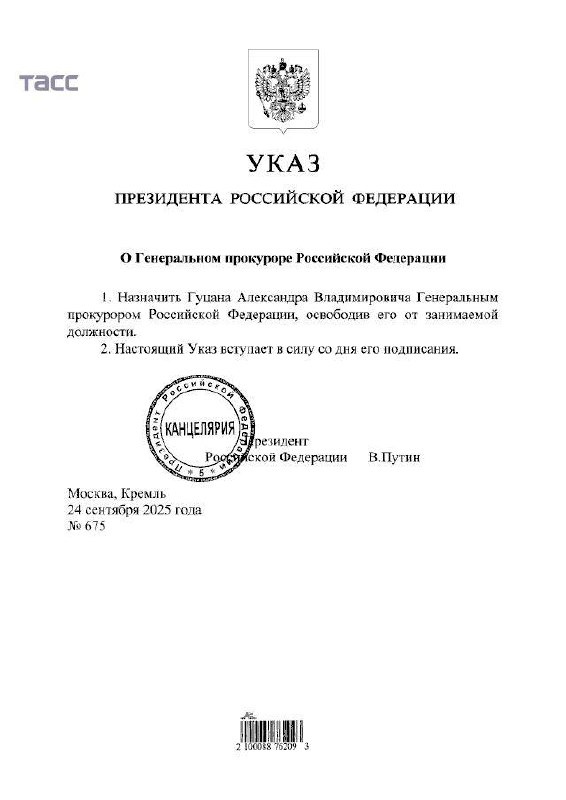 ❗️Путин подписал указ о назначении Гуцана генпрокурором.