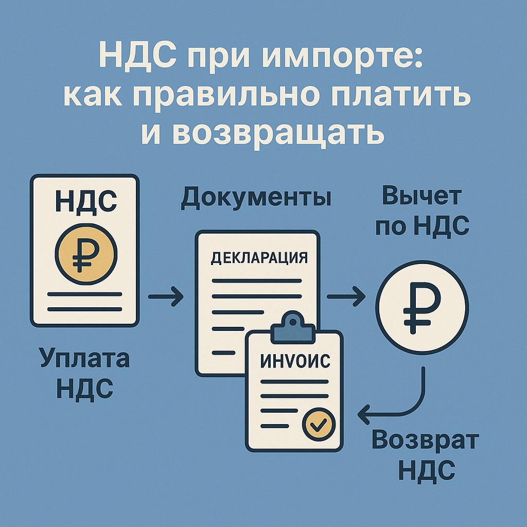 При импорте товаров из Китая или других стран в Россию одним из ключевых этапов становится уплата НДС (налога на добавленную стоимость). Именно с этим налогом связано больше всего вопросов у предпринимателей: зачем платить, можно ли вернуть и как избежать ошибок. Разберёмся, как работает НДС при импорте и какие действия должен предпринять бизнесмен, чтобы не потерять деньги. Импортный НДС — это налог, который взимается при ввозе товаров на территорию России и ЕАЭС. Он рассчитывается от таможенной стоимости груза, включающей: Формула простая: НДС = (Таможенная стоимость + Пошлина + Сборы) × ставка НДС. В РФ стандартная ставка — 20%, но на некоторые категории товаров действует 10% или 0%. Да, но только если вы ведёте официальный бизнес в РФ. 📌 То есть уплаченный налог возвращается вам «внутри системы», уменьшая итоговые налоговые обязательства.