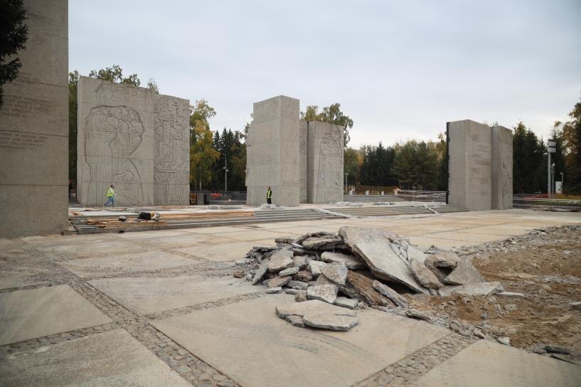 На мемориальном комплексе «Монумент Славы» в Ленинском районе Новосибирска продолжается реконструкция бетонного покрытия. Работы ведутся с использованием современных материалов и технологий, обеспечивающих долговечность покрытия, при этом исторический облик монумента сохранён. Процесс контролирует мэр города Максим Кудрявцев. «Монумент Славы — это священное место для каждого из нас. В этом году мы отмечаем 80-летие Победы в Великой Отечественной войне. В преддверии этого большого праздника мы провели обследование монумента, выявили ряд дефектов, которые могли привести к разрушению памятника. После проведения мероприятий 9 Мая, Дня памяти и скорби мы приступили к конкурсным процедурам. На ремонт объекта мэрия Новосибирска выделила 60 млн рублей. Сейчас строительно-монтажные работы идут полным ходом. Ремонтируем покрытие возле Вечного огня, меняем плиты на площади у пилонов и плитку на тротуаре главной аллеи. Планируем завершить работы в этом году», — отметил мэр Максим Кудрявцев. Он под
