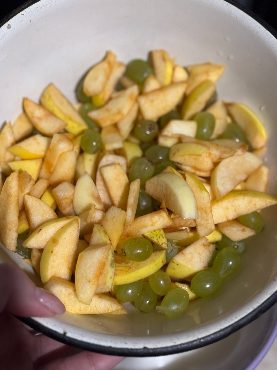 Шарлотку умеют печь все. Это такой пирог, для приготовления которого вообще не требуется никаких особых кулинарных навыков. Всего-то нужно порезать яблоки, залить тестом - и в духовку. А я пеку шарлотку в мультиварке) И очень мне она нравится - пышная получается, нежная. Готовлю всегда по одному и тому же рецепту. Этим рецептом со мной старшая дочь поделилась. Ни разу ещё он меня не подвёл) Вчерашняя шарлотка была с яблоками и виноградом. Со сливами ещё пеку. Или с брусникой. Вкусно в любом случае) Причём начинки всегда кладу много. Для теста беру 4 яйца категории С0 (или пять, если С1), отделяю белки от желтков. Белки круто взбиваю. Всыпаю 0,5 стакана сахара и снова взбиваю. Добавляю просеянную через мукосейку муку - один стакан, аккуратно перемешиваю. Потребуется ещё разрыхлитель (0,5 чайной ложки), ванильный сахар и корица - по вкусу. Желтки взбиваю отдельно и вливаю в тесто. Снова перемешиваю до однородной массы. Субстанция получается по консистенции, примерно как сметана средней г