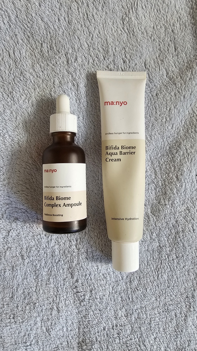 Корейская косметика давно в моем уходе- многое перепробовала. Я часто в разъездах, поэтому обычно беру наборы миниатюр --в последнее время чаще всего от Medi peel. С ними все ок, но кожа, сидимо, привыкла и продукты стали работать не так эффективно, а я давно посматривала в сторону баночек Ma:nyo. Но у них практически не бывает мини наборов (сейчас на Озон есть всего один вариант). Поэтому "психанула" и купила полноразмерные сыворотку и крем: