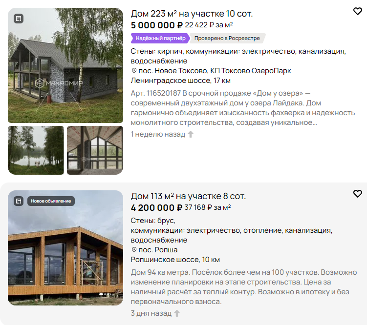 Я бы может и прошёл мимо этой заметки из американского издания Нью Йорк Пост, но её восторженный тон прямо-таки зацепил. Это они ещё хвастаются - дескать, смотрите, что мы нашли! Всего-то - 17 млн рублей! Даже если посчитать по ППС, разделив на 3,5, получается почти 5 млн. Что можно купить за эту сумму в Ленинградской области? Ну, вот например: И это будет НОВЫЙ ДОМ, рядом с мегаполисом. а не у чёрта на куличиках. Впрочем, давайте насладимся оригиналом: "Для покупателей, которые сталкиваются с проблемами с доступностью жилья, потратить большую сумму денег на покупку дома может оказаться непростой задачей, но для тех, кто готов засучить рукава и потрудиться, дом, требующий небольшого ремонта, может стать идеальным решением. Согласно последнему исследованию данных Realtor.com по листингу за июль 2025 года, предусмотрительные покупатели могут получить существенные скидки, приобретая недвижимость, требующую ремонта: экономия составляет от 56% до почти 78% в некоторых местах Юга и Среднего