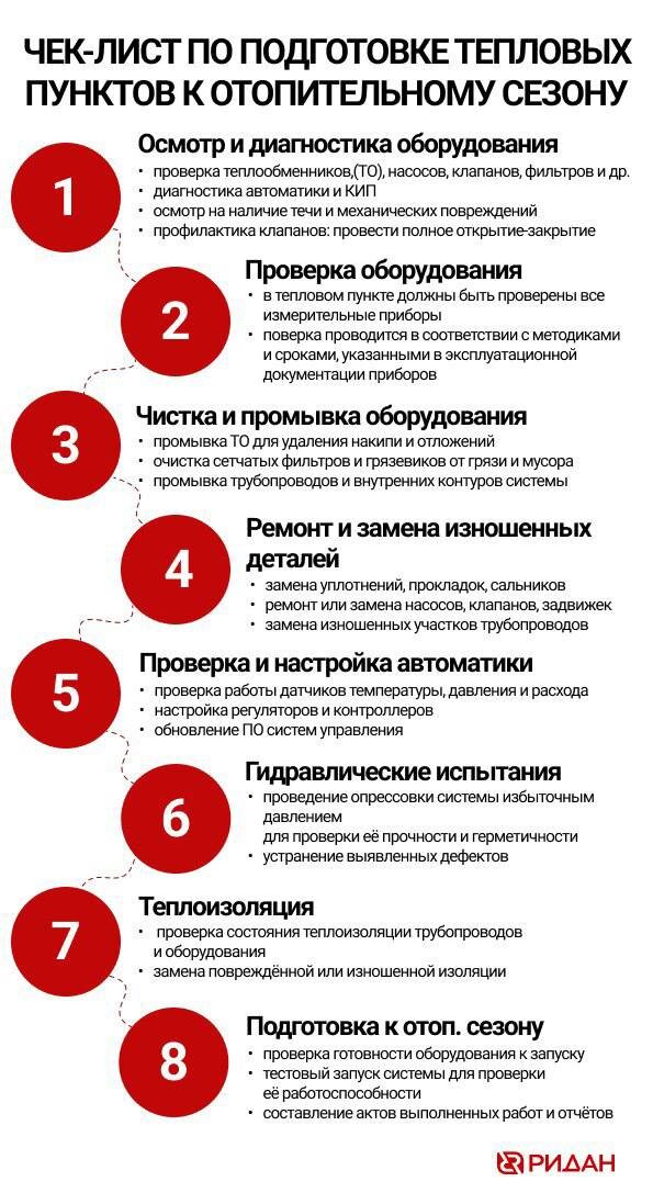 Судя по прогнозам синоптиков, холода уже близко. А значит, старт отопительного сезона не за горами☕️. 📌Руководитель сервисного отдела компании «Ридан» рекомендует воспользоваться нашим чек-листом для комплексной проверки систем. Мы уверены, что большинство работ было выполнено заблаговременно, и наш список поможет убедиться, что всё готово на 100%. 🔤 Эффективность. Инновации. Развитие