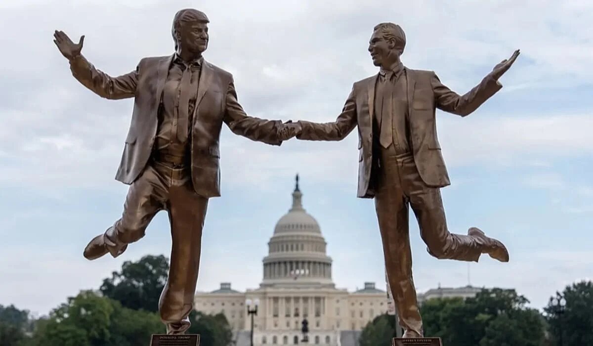 Неизвестные установили в Вашингтоне скульптуру Трампа и Эпштейна, держащихся за руки