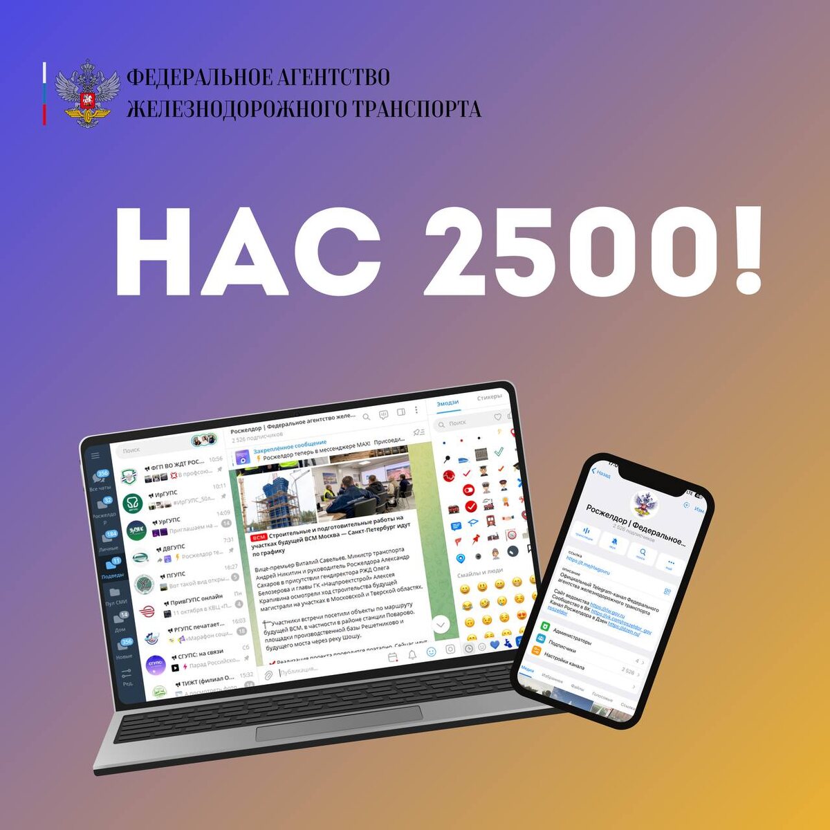 👏 Дорогие друзья! Мы перешагнули отметку в 2500 подписчиков! Мы благодарим всех, кто вместе с нами следит за самыми актуальными новостями Росжелдора и всей железнодорожной отрасли! 🙏Продолжаем развиваться для вас и делиться полезным контентом! 🚆 Подписаться на Росжелдор в Telegram| Читать нас в MAX