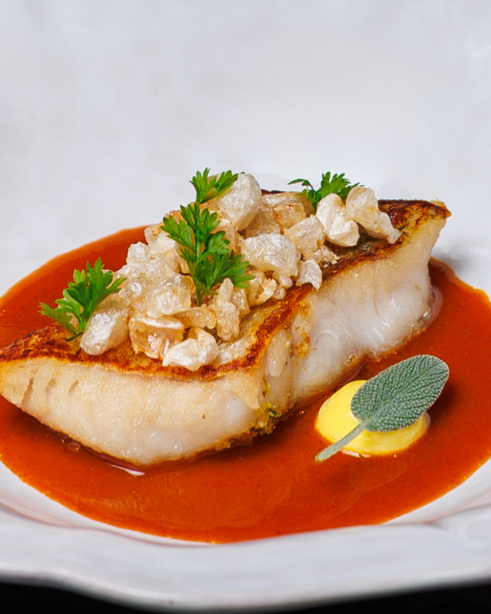 🍽 Судака мы привыкли видеть на тарелке, но не все знают, что он изображён и на гербе Ладушкина — старинного рыбацкого селения на берегу Калининградского залива. 🐟 Серебряная рыба символизирует богатство местных вод. Рядом — исполинский дуб с мощным стволом и пышной кроной. Ему уже около 900 лет: он помнит тевтонских рыцарей, переселенцев и первые праздники советской эпохи, где угощали, конечно же, судаком. Наш шеф-повар создал особый рецепт этой рыбы: нежное мясо с неожиданными копчёными оттенками раскрывает судака по-новому.