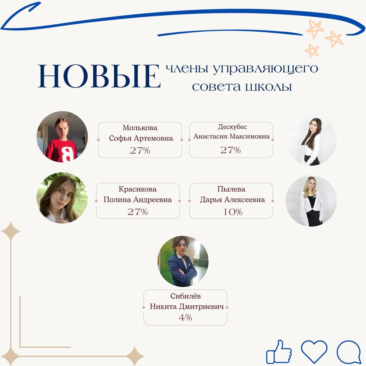 Выборы в Управляющий Совет - победители от учеников 🙋♀️ Наши ученики – это не просто будущее, это активные участники настоящего! Они организуют мероприятия, делятся опытом с младшими, и вообще, делают нашу школьную жизнь ярче и интереснее! ✨ Самые инициативные из них участвовали в выборах в Управляющий Совет, и теперь мы готовы объявить имена победителей! 🥁 🎉 Встречайте будущих лидеров! Эти ребята полны энергии, амбиций и свежих идей, которые, мы уверены, помогут сделать нашу школу еще лучше. 🚀 Нет никаких сомнений, что они достойно представят интересы всех учеников в Управляющем Совете! Поздравляем! 🥳 #ДОНМ #НашУправляющийСовет #школа626 #школасац #котловка #мрсд23