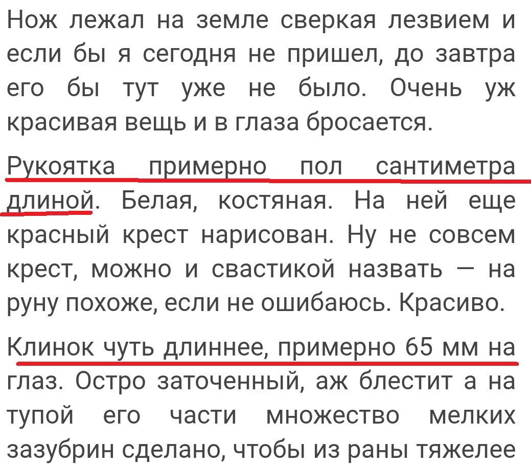 Так как сейчас я пытаюсь освоить новую платформу для авторов и пробую писать в новом для меня жанре мистики, конечно, я читаю произведения других авторов, чтобы понять что теперь носят пишут и как это лучше делать. Читаю и понимаю, что я ничего не понимаю... Попробуем разобраться вместе? Повесть о простом парне, который узнал о существовании магии и, после динамичной схаватки с противником нашел можный артефакт. Кинжал: Нет, "клинок" чуть длиннее пяти сантиметров я вполне могу себе представить: у моей прабабушки был складной ножичек с лезвием такого размера. Она с ним ходила за грибами. Но рукоятка в пять МИЛЛИМЕТРОВ?.. Преследуемая монстрами, которые, к тому же, оккупировали подъезд, семья добирается до своего балкона по пожарной лестнице, и... Вот тут приведу аргумент, который меня смешит в комментариях: я такого не видела. Может, я отстала от жизни, и балконы на Урале в старых хрущовках теперь закрывают на ключ? Парень и девушка смотрят фильм. Мирная, спокойная картина. Но почему-т
