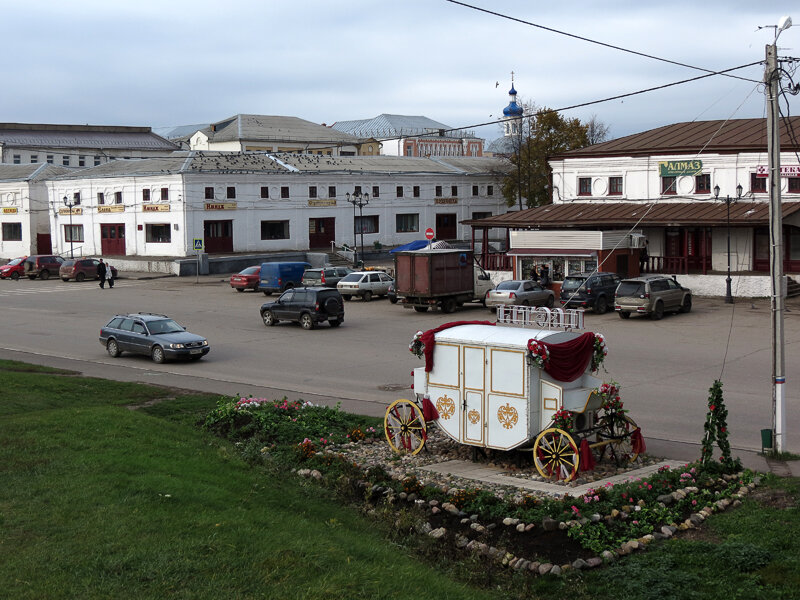 Ещё в собор можно зайти. Смотритель - с виду обычный районный мужичок, но как оказалось, по крайней мере историю собора знает отлично. Росписи на потолке, по его словам, 1827 года... но главное - белые камни с барельефами, собранные археологами по окрестным огородам. Туристов в соборе много, снять кадр без 3-5 человек почти нереально - всё ж таки мы на "Золотом Кольце"...