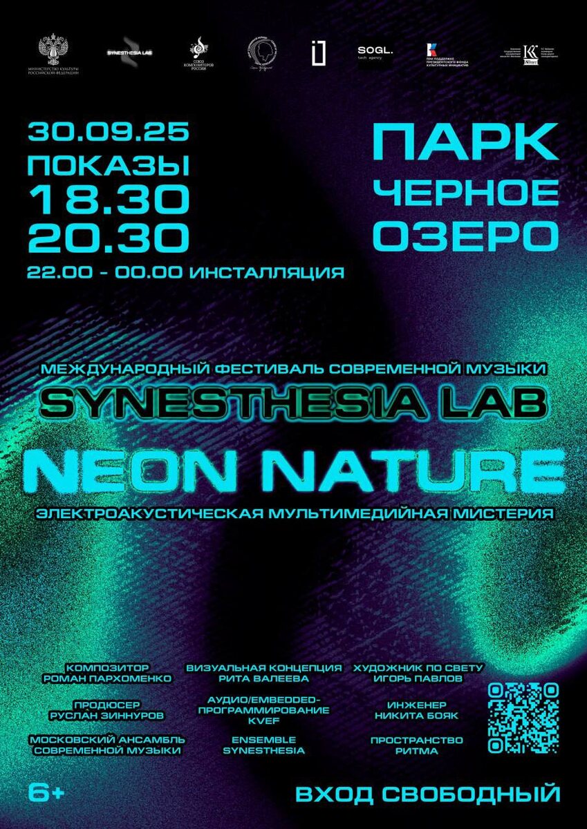 Открытие Международного фестиваля современной музыки «Synesthesia lab», 6+ 🗓️ 30 сентября ⏰ 18:30 💸 вход свободный 📍 Парк «Черное озеро» 🟢Два показа — в 18:30 и 20:30 — синтез современных технологий и природы. По замыслу композитора, руководителя проекта Романа Пархоменко и 3D-художника, автора визуальной концепции Риты Валеевой, пространство парка преобразится в гигантскую теплицу, где живое дерево на время превратится в музыкальный инструмент благодаря art&science технологиям. 🟢Будет создана иммерсивная среда, где тонны света и звука соединятся с живым звучанием музыкальных инструментов солистов Московского ансамбля современной музыки, ensemble synesthesia и ансамбля «Пространство ритма». А с 22:00 до 00:00 можно будет увидеть продолжающуюся инсталляцию. ➡️ ПОДРОБНОСТИ ⬅️ ❗️ Детская Афиша | Казань Больше информации в нашей группе, переходите