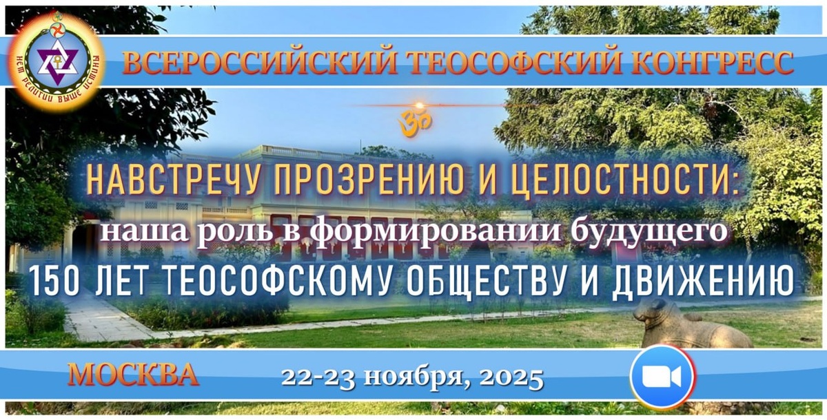 Дорогие друзья, ☀️⚡️☀️ ЕЖЕГОДНЫЙ КОНГРЕСС ТЕОСОФСКОГО ОБЩЕСТВА состоится в Москве 22-23 ноября 2025 года! 🔯 Как и всегда, время его проведения - вторая половина ноября. Это связано с датой основания Теософского общества 17.11.1875 года. В этом году мы отмечаем важный юбилей: 150-летие Теософского общества и движения! ✅❗️🔔 Тема Конгресса: «НАВСТРЕЧУ ПРОЗРЕНИЮ И ЦЕЛОСТНОСТИ: НАША РОЛЬ В ФОРМИРОВАНИИ БУДУЩЕГО. 150 ЛЕТ ТЕОСОФСКОМУ ОБЩЕСТВУ И ДВИЖЕНИЮ». 🌸 Конгресс – ежегодное мероприятие, объединяющее интересующихся теософией по всей стране, позволяющее вместе исследовать наиболее важные и актуальные теософские темы, делиться опытом жизни в свете теософии, встретиться с друзьями и сотрудниками. В этом году мы вместе будем осмысливать реалии современности, соединяя прошлое, настоящее и будущее. ✅ 🎓 Представители разных Отделений ТО представят свои доклады, которые можно будет обсудить как после каждого выступления, так и на круглых столах, включённых в программу. 🌸 Мероприятие откр