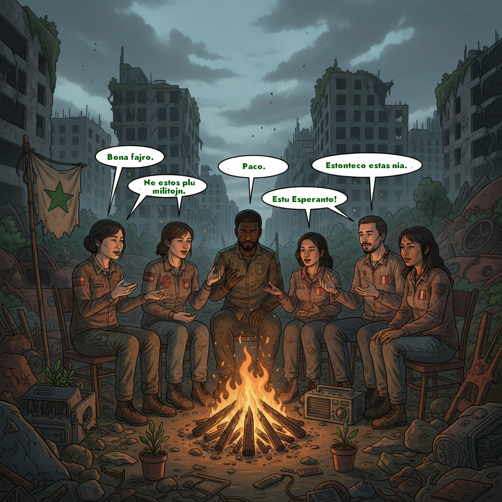Представьте: пандемия, ядерная зима, восстание машин — неважно. Цивилизация, какой мы ее знаем, перестала существовать. Интернет — память. Электричество — роскошь. Мир снова разделен на разрозненные общины, говорящие на десятках языков. Выживание зависит от сотрудничества, но как договориться с группой выживших из соседнего города, если вы не понимаете друг друга? Наш старый мир выбрал для глобального общения сложный, неправильный английский. Мир после катастрофы нуждается в другом инструменте. Идеальным ключом к возрождению может стать язык, созданный для единения, — эсперанто.