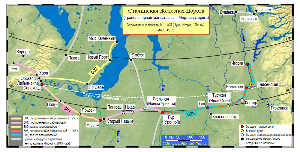 План был очень грандиозным. Железнодорожный путь через вечную мерзлоту должен был связать Атлантический, Северный Ледовитый и Тихий океаны. Плюс строительно порта на мысе Каменный.