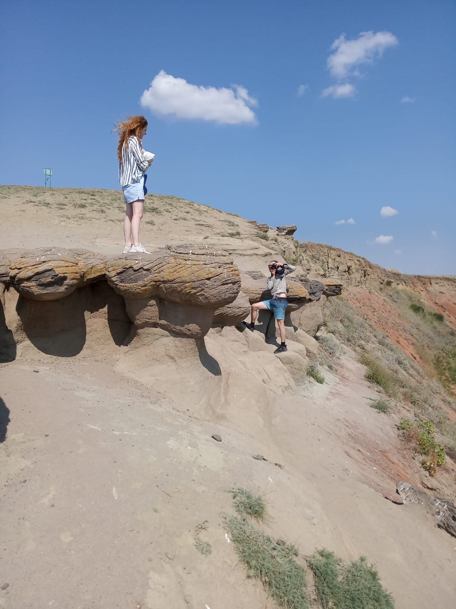 Но даже сквозь порывы ветра, мы смогли оценить величие этого места. Букобайские яры – это целый лабиринт, созданный самой природой. Причудливые формы, напоминающие инопланетные пейзажи, заставляют почувствовать себя маленькой песчинкой в огромном мире. Слоёное строение породы, в которой соединились серые, зеленые, желтые и коричневые песчаники, создает прекрасный визуальный эффект – полосчатый рисунок на этих природных скульптурах.