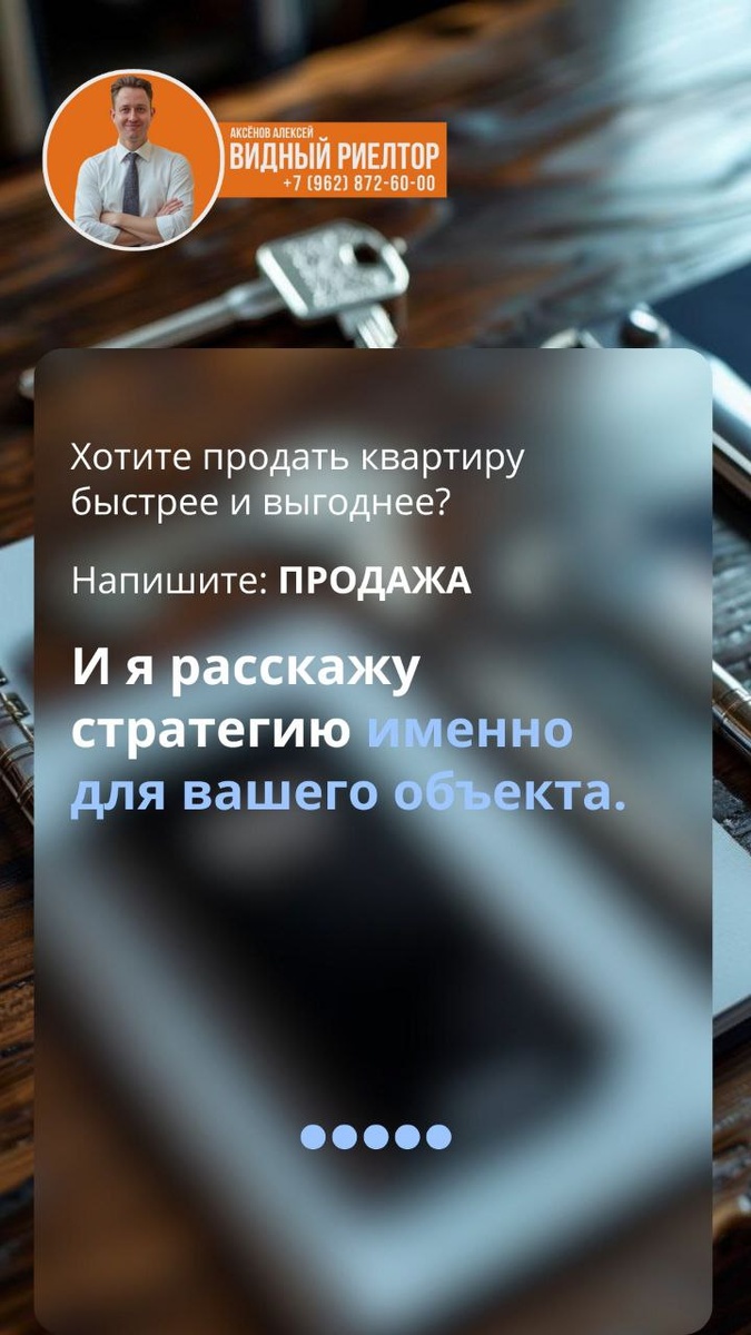 😓 Ваш покупатель мог уже звонить… А вы просто не заметили. ❕Больше половины людей не берут трубку от незнакомых номеров, устав от навязчивых спамеров и автопрозвонов. Из-за этого реальные сделки теряются в потоке спама. ❗️ Профессиональный риелтор всегда на связи — это одна из причин, почему со мной продавать недвижимость комфортнее, чем самому. Меня зовут Аксёнов Алексей — автор телеграм-канала «Видный Риелтор». И вот почему я буду вам полезен: ✅ Избавлю вас от стресса при общении с покупателями и коллегами. ✅ Сэкономлю ваше время на показы. ✅ Защищу от мошенников (а их становится всё больше). За счет: 🔽Точной оценки цены. 🔽Эффективного маркетинга и рекламы. 🔽Грамотной презентации на показах. Я помогаю продать быстрее и выгоднее, чем самостоятельно! В итоге вы экономите время, избегаете рисков и получаете максимальную цену за свой объект. 🔑 Хотите продать квартиру, земельный участок или коммерческую недвижимость быстрее и выгоднее? Напишите мне, обсудим стратегию продажи