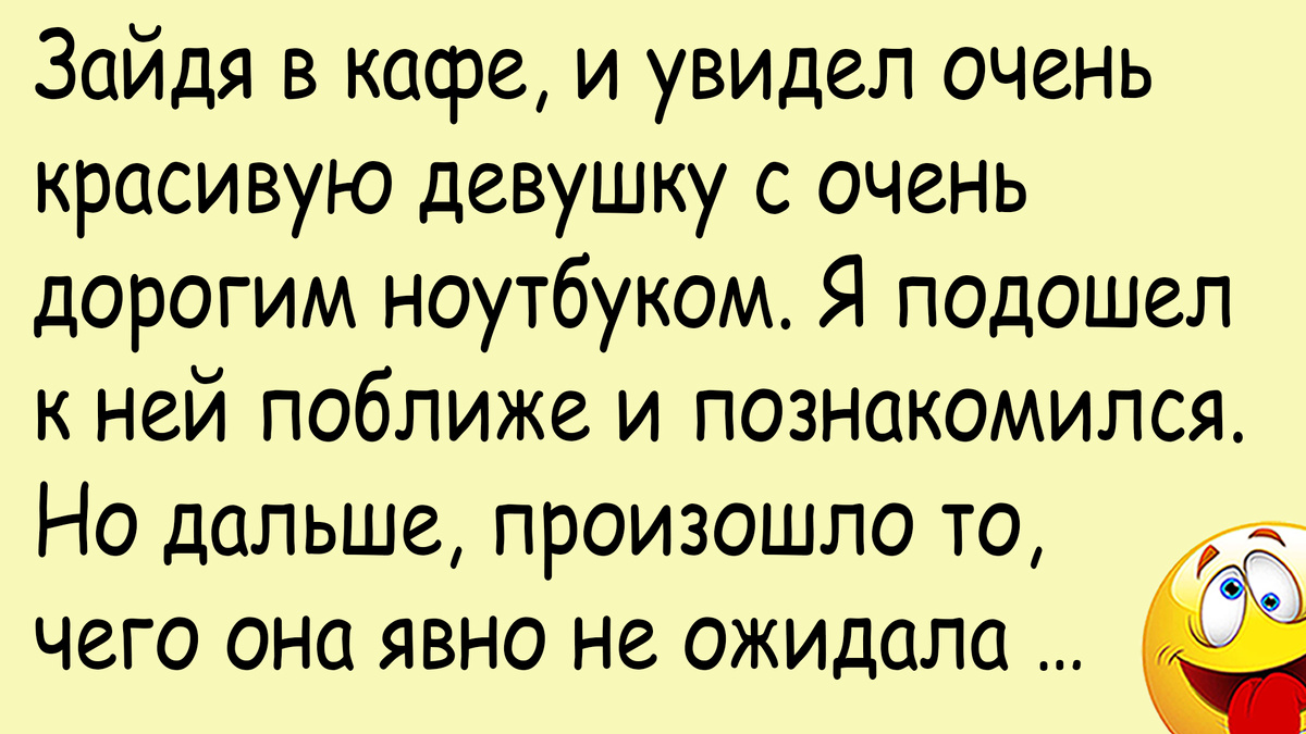 Я тут недавно с девушкой познакомился. Точнее, как познакомился? Хотел познакомиться, но … произошло то, что вызывает смех у всех, кому я рассказываю, хотя мне было совсем не смешно. А как дело было? Гулял в выходные по городу и решил заглянуть в кафе, чтоб перекусить. А кафешка была двойная, то есть часть кафе со столиками находилась в помещении, а часть – снаружи. Кстати, очень удобная конструкция. Ведь если на улице дождь, то сидишь внутри, а если жарко, то на улице. Все столики были заняты, но один был частично свободен. То есть там было 4 стула, а занят только один. На нем симпатичная девушка сидела и что-то печатала на своем ноутбуке. Меня это сразу заинтересовало – ведь перед ней стоял макбук последней модели, да еще и с большим экраном. Короче, присел рядом, заказал себе еду и, по ходу поедания пищи, разговорился с дамочкой, которая решила сделать себе небольшую передышку. Выяснилось, что она только недавно купила этот ноут в кредит. А теперь заканчивает какой-то проект, от кот