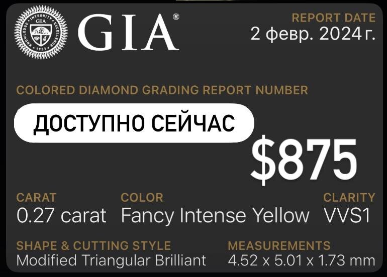 Прямо сейчас в продаже появился очень классный бриллиант, для изысканного и невероятно утончённого изделия, солнечный оттенок которого - точно согреет Вас этой осенью ❤️🔥