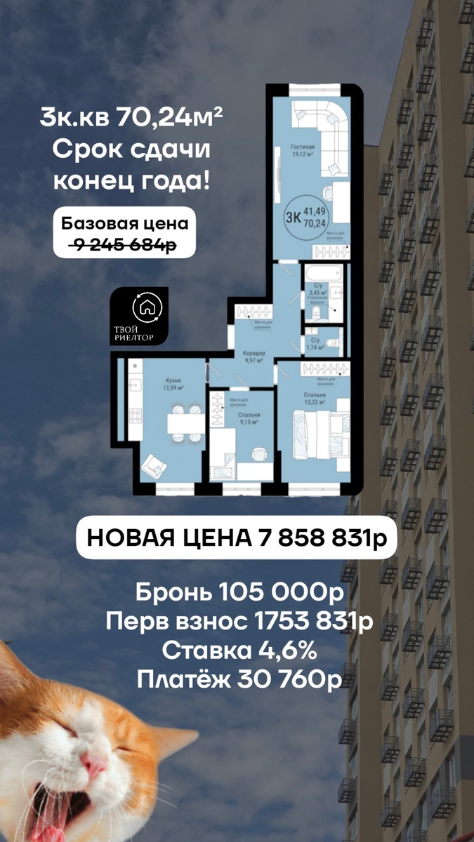 #квартирыдня Запускаем новую рубрику🥳 Выгодные скидки Ставка 4,6% по семейной ипотеке 👍 ✔️Защита от плохой «погоды» ЖК Veter, где всё создано для гармонии вашей семьи. ✔️Уникальный двор-парк с игровыми зонами по тематикам: солнечная, дождливая, ветреная. Всё безопасно. ✔️Планировки на выбор: от смарт-квартир до просторов с террасой. ✔️Безопасность и комфорт: свои пифты, камеры, окна с проветриванием 🔗Локация И как всегда, наши услуги 0₽ 🩷🩷🩷