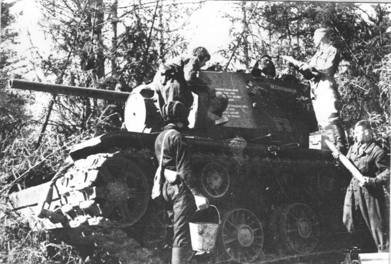 «…Я очень извиняюсь перед Вами за долгое молчание, но вот чем оно было вызвано. Наша часть вступила в бой. Мой взвод при поддержке пехоты занял три деревни — Ожогово, Жуково и Слободку, уничтожив три миномета, восемь тяжелых и семь противотанковых орудий. Еще раздавили гусеницами 11 пулеметов. Экипаж остался невредим, а машину немного изуродовали, сволочи. Но ничего, при помощи ремонтников мы устранили неисправности и снова пошли в бой…»