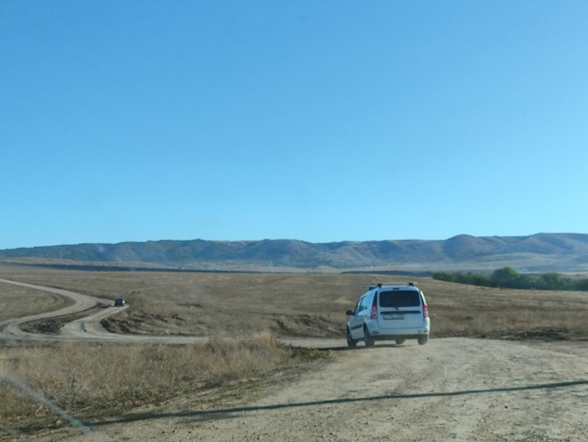У меня совсем вирусяка разыгралась. Нос забит, голова чугунная, в груди ломит, как ночь пережила, до сих пор удивляюсь... И как еще смогла весь день и в машине просидеть, и еще по локациям перемещаться, тоже загадка ))) А выбрали мы направление в сторону дома, при этом с заездом на разные пляжи и достопримечательности. Первым делом рванули в Судак. Но по интересной трассе, часть пути по полям..