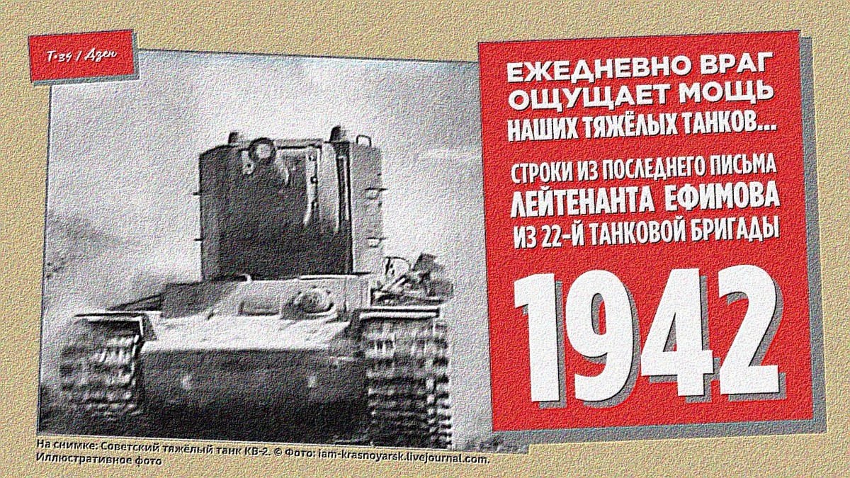 «Ежедневно враг ощущает мощь наших тяжёлых танков…» — строки из последнего письма лейтенанта Владимира Ефимова из 22-й танковой бригады