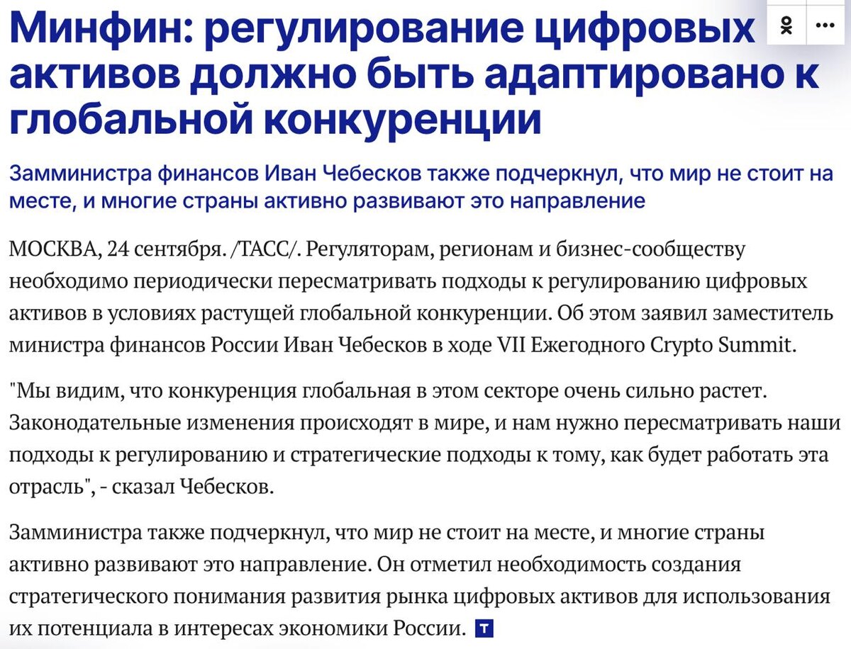 🇷🇺 Минфин РФ: Регулирование цифровых активов должно быть адаптировано к глобальной конкуренции