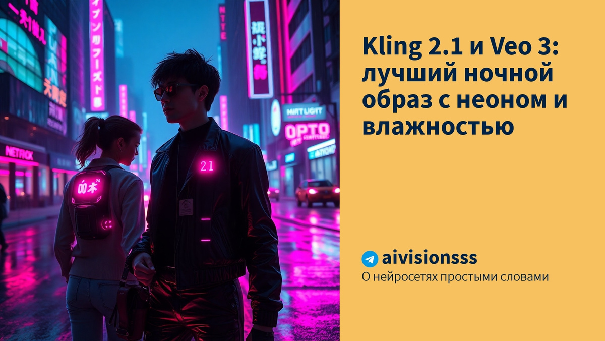 Откройте для себя сравнение Kling 2.1 и Google Veo 3 для создания стильных ночных городских видео с неоном и мокрым асфальтом — выбирайте лучший AI-инструмент для ярких отражений и атмосферных эффектов.