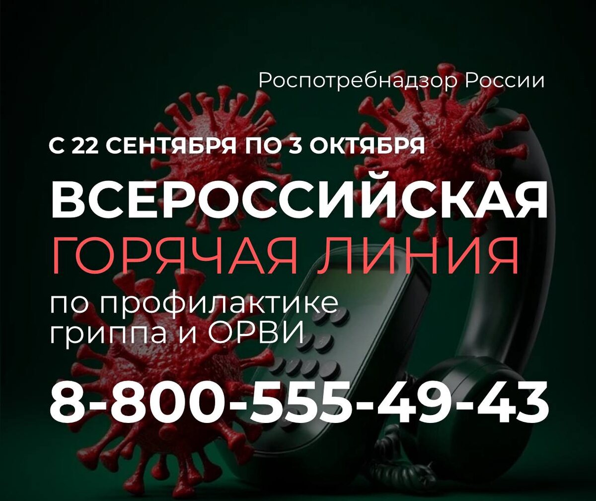 Роспотребнадзор запустил Всероссийскую горячую линию по профилактике гриппа и ОРВИ Специалисты Роспотребнадзора ответят на вопросы: 🔴где и как можно сделать прививку от гриппа; 🔴как правильно подготовиться к вакцинации и что учесть в день прививки; 🔴можно ли совмещать прививку от гриппа с другими вакцинами; 🔴какие штаммы включены в текущую вакцину; Также дадут рекомендации для родителей о первых симптомах заболевания и мерах защиты. Горячая линия работает круглосуточно до 3 октября ☎️ 8-800-555-49-43 звонок бесплатный